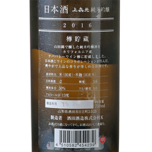 2:上喜元 純米吟醸 Napa Valley ワイン樽貯蔵(2,933円前後)