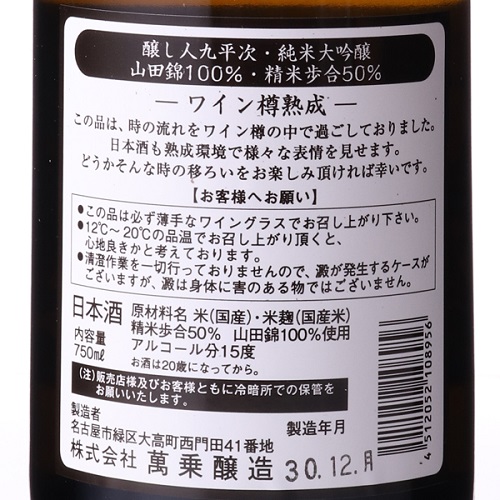 3:醸し人九平次 純米大吟醸 ワイン樽熟成(5,500円前後)